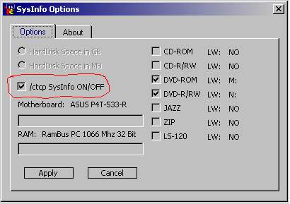 New in Version V2.42: System Stats Display on /ctcp VERSION added. ON / OFF switchable in the Options Dialog.